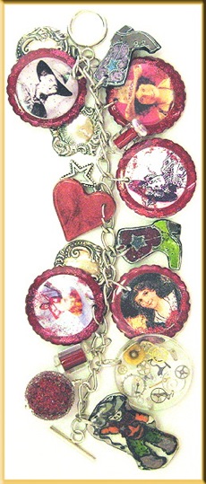 Our town’s Molly Quiqley Hughes has a website, and it is chocked full of charm bracelets designed by Santa Fe artist, Betty Kyle. What makes all of these bracelets so special is that they are all themed and made of bottle caps enchanced with altered art images. Her variety includes the Western-themed bracelet shown…….just in time for Rodeo, of course! However, there are also many other themes to choose from……..Asian-inspired, Frida Kahlo, Women in Art and the Wizard of Oz to name a few of these museum-quality pieces.