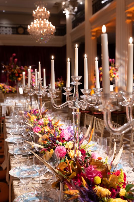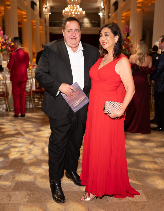 After the final bow, the celebration continued as all guests were transported to the Corinthian Houston, where guests were treated to a feast for both the eyes and the palate. The Events Company transformed the space into a glowing, fire-kissed dreamscape with vivid florals in scarlet and orange, flickering chandeliers, and linens that shimmered like embers.