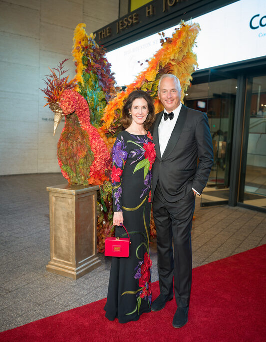 The black-tie affair, chaired by Carey Kirkpatrick, brought Houston’s most stylish supporters downtown for a night that blended high art with high glamour. Guests entered Jones Hall through a showstopping nine-foot Firebird sculpture — a bold and beautiful nod to the night’s inspiration — before enjoying a lively champagne reception on the Mezzanine, buzzing with excitement for what was to come.